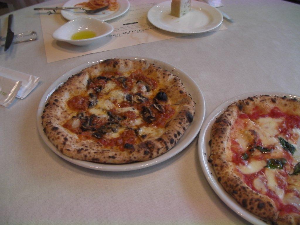 NさんとTさんはマルゲリータピザとマッシュルームとモッツレラ・豚ひき肉のトマト煮ピザ
