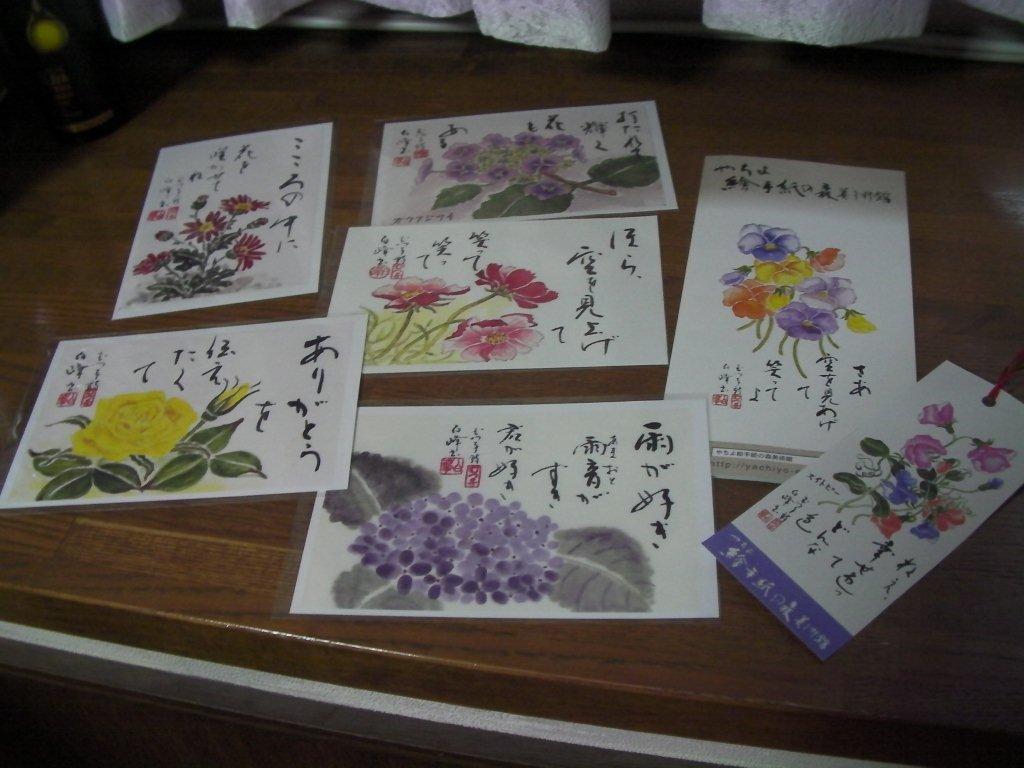 館内の撮影は禁止。何枚か気に入った絵手紙を買ったので紹介する。一枚100円。