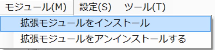 下記画像を参考にモジュール→拡張モジュールをインストールで追加するモジュールの一覧の中から導入したいmodのチェックをいれOKを押すと、指示が表示されるのでそれにしたがって行えば書き込みが始まります