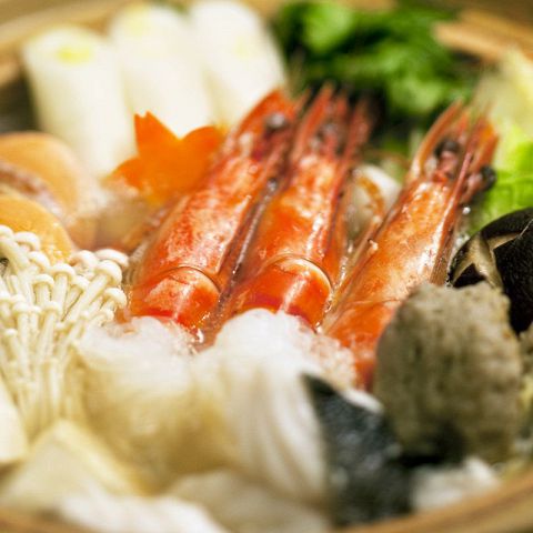 産地直送、新鮮な魚介をふんだんに盛り込んだ寄せ鍋です。あっさりとした出汁に魚介の旨味が溶け込み、最後の一口までおいしく楽しめます。