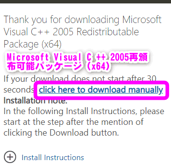 これで「Microsoft Visual C ++ 2005再頒布可能パッケージ」がインストールされました。