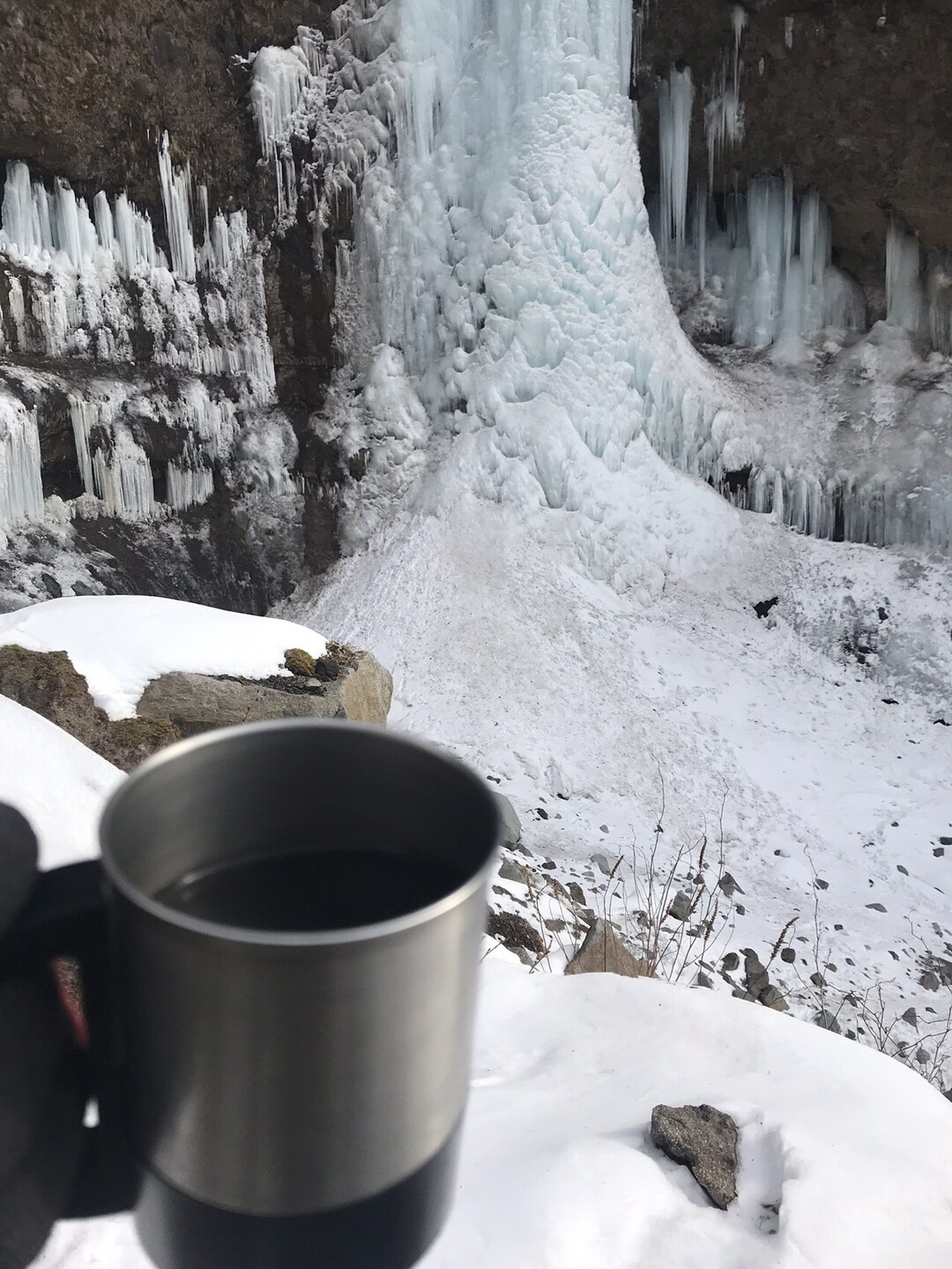 遠くに氷柱群が見えます。