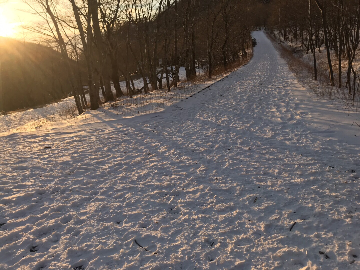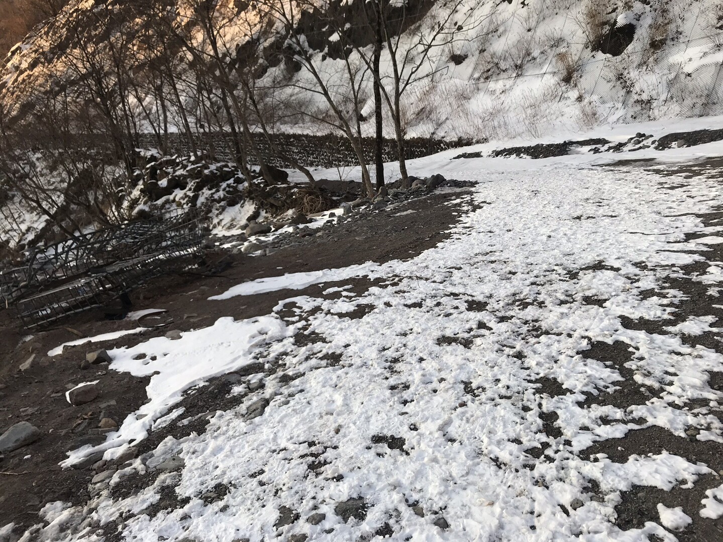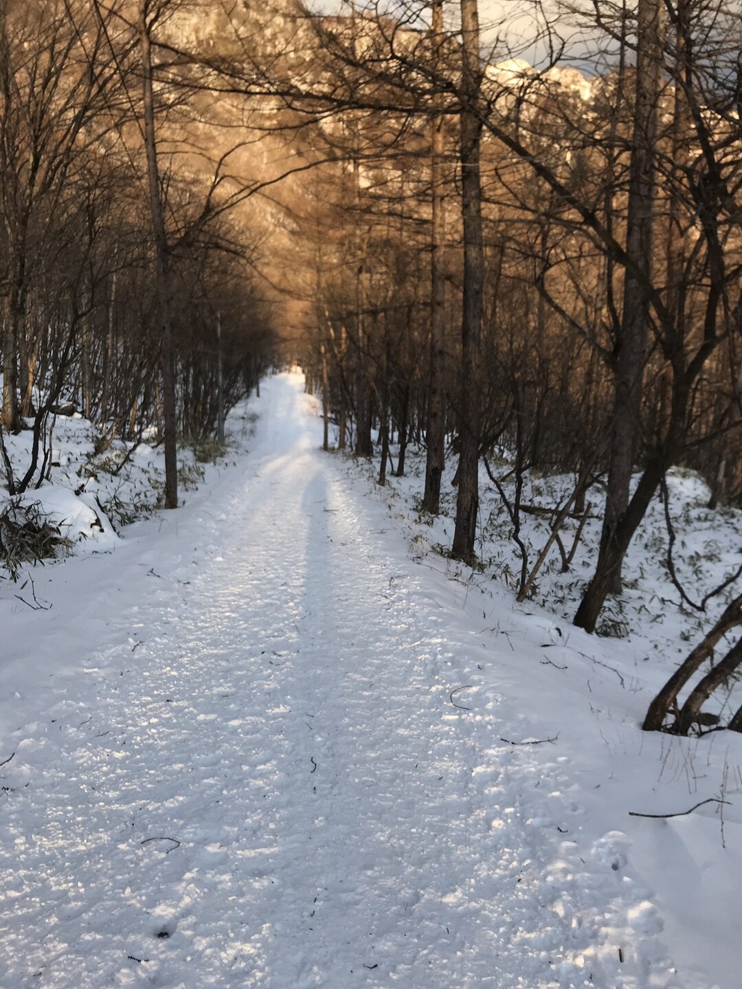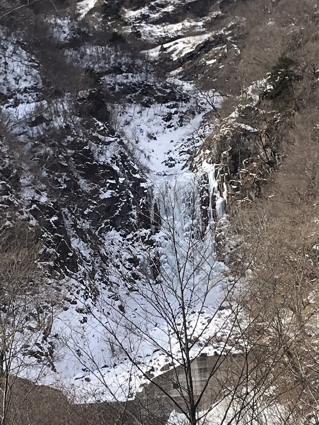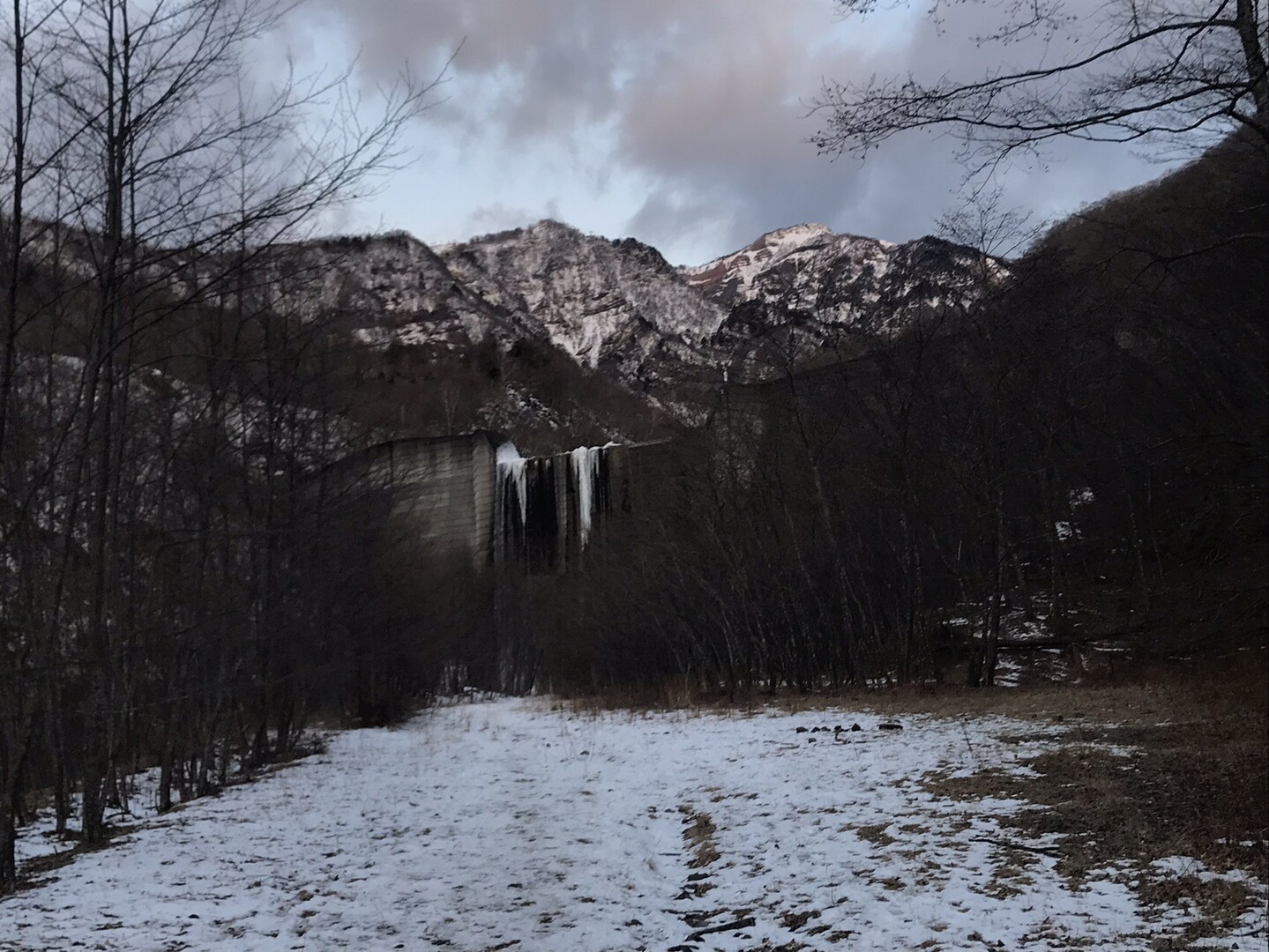 例年なら右側の林道から河原を歩きますが、今年は雪が少なく渡渉が難しそうだし、氷柱も育ってないので見応え無しと思われるので省略して左側の林道を行きます。 トレースも圧倒的に左側の道の方が多かったです。