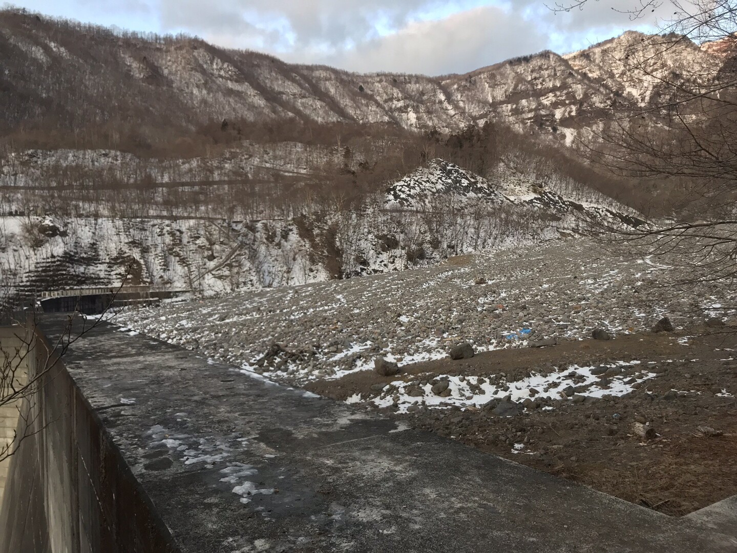 巨大な堰堤が現れます。 右側から巻いて上流の河原に降ります。
