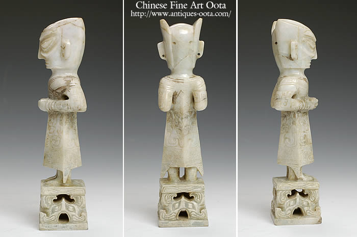 商代(約前2000年~前1066年)は中国で初めて文字が使用された時代である。商代早期は玉器の発見が少なく,礼器、儀仗、道具、生活用品、飾り物と雑器6種類に使途が分かれていた。(中国の玉器引用)