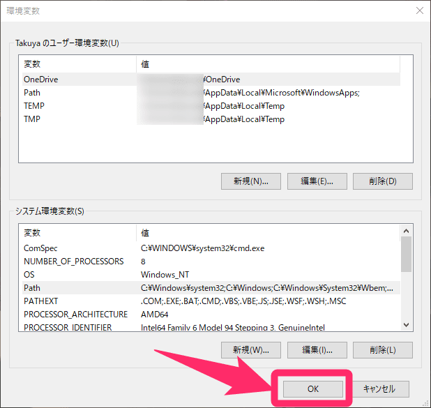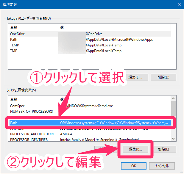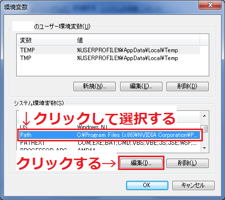 ※環境変数の編集はシステムの動作に影響を与えます!間違えないように注意してください!