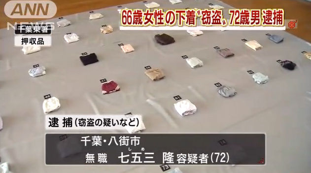 【グロ画像あり】 下着泥棒の押収品 警視庁がパンツを展示wwwwwwwwww