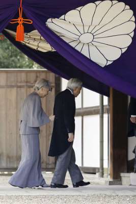 天皇を杖代わりにする嫁、台の上から先祖の御霊に参拝する天皇。日本の天皇家の上に君臨したい、シナ朝鮮人の性格が滲み出てるけど?