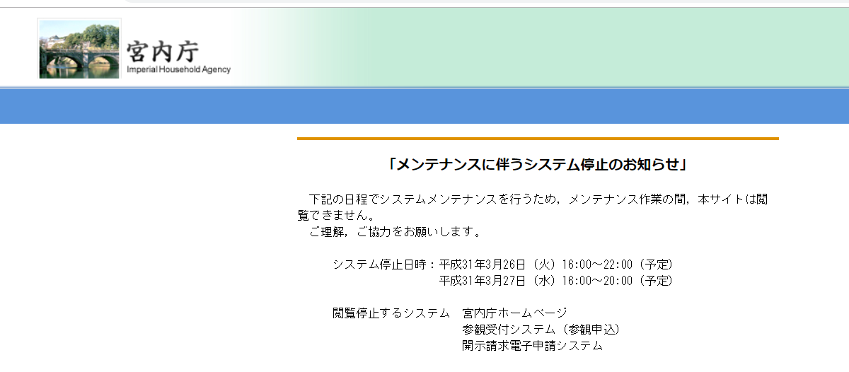 宮内庁HPメンテナンス・・・・・って。大体、察しはつくが・・・多分、静養3匹(盗宮)へのクレームが殺到したんだろうね。(笑)