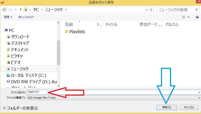 ※赤矢印のとこで、保存する場所と名前が確認できます