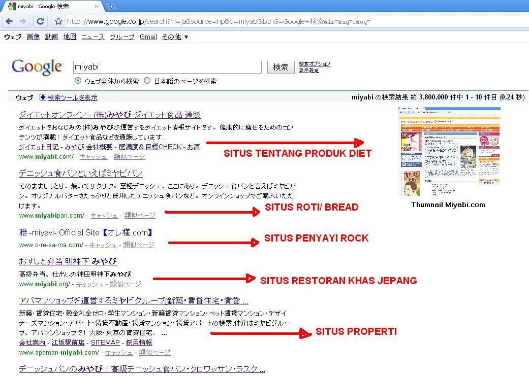 キーワード「Miyabi」によるGoogle.co.idの検索結果