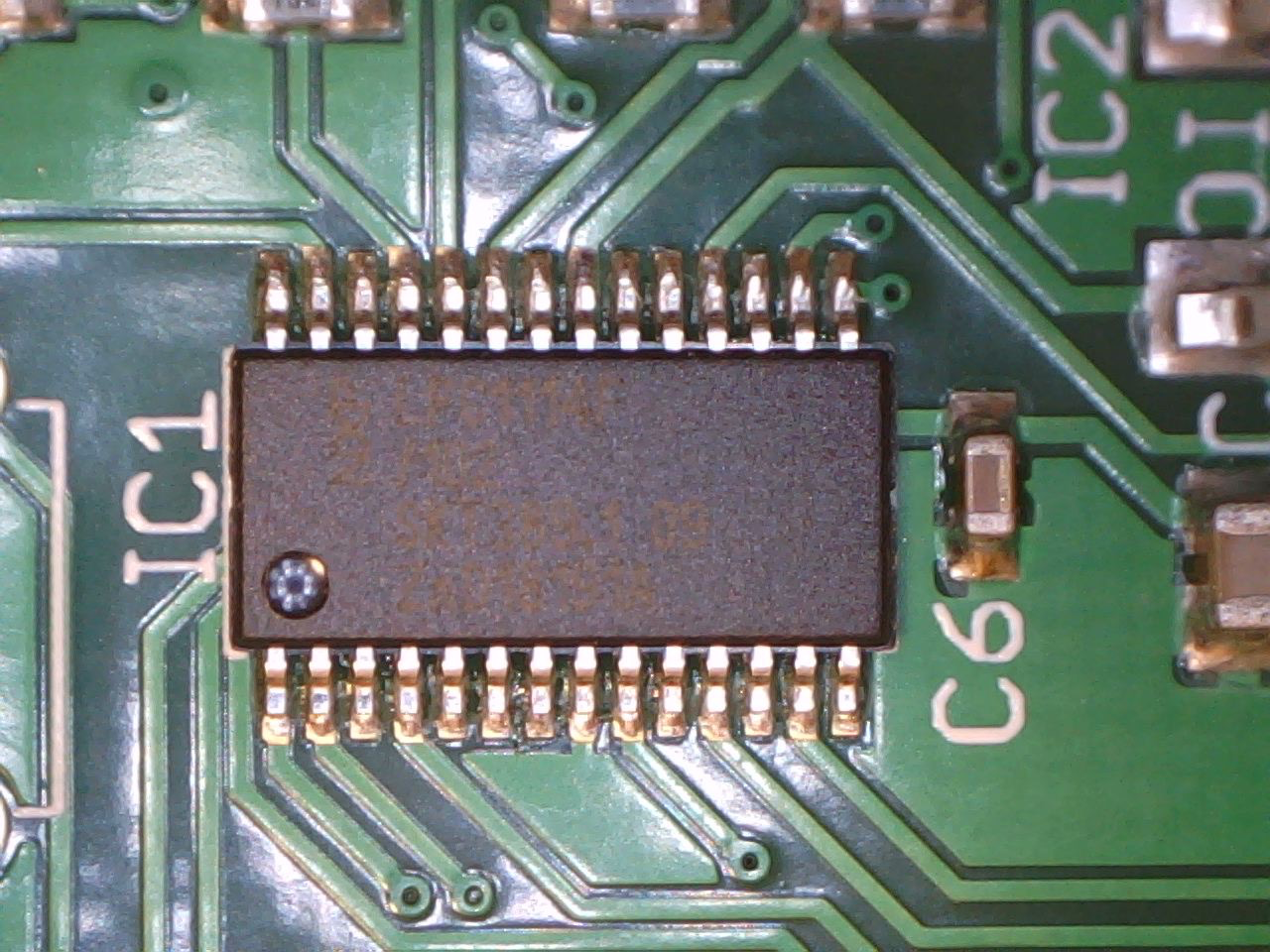 MECHANICは共晶ハンダではごく一般的なブランドで、私もステンシルを使うようになってからはずっとコレなのですが…残念ながら鉛フリーハンダペーストの品質はよくありませんでした。写真の通り、小さなTSSOPのランドすら広がりきっていません。いわゆる「濡れ性」が低い、ということなのでしょうか(写真の基板は金メッキ処理。写真だとわかりにくいですが金メッキが隠れずに見えています)。