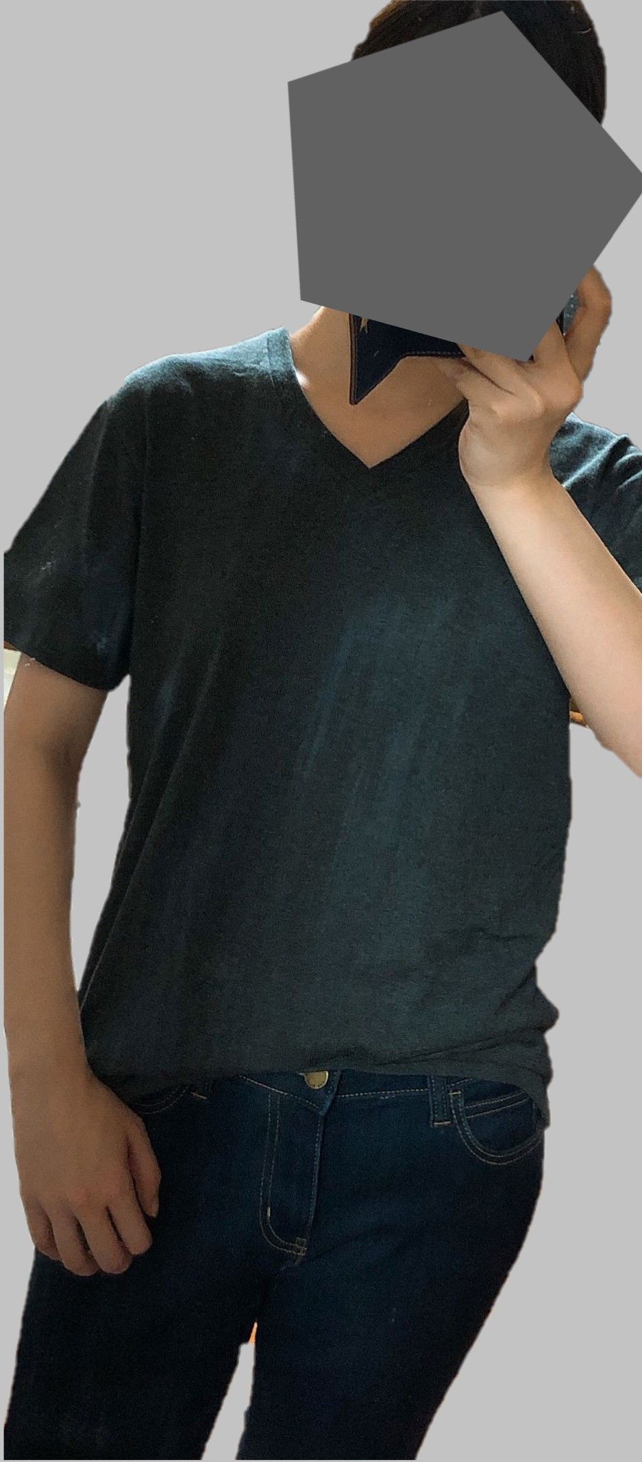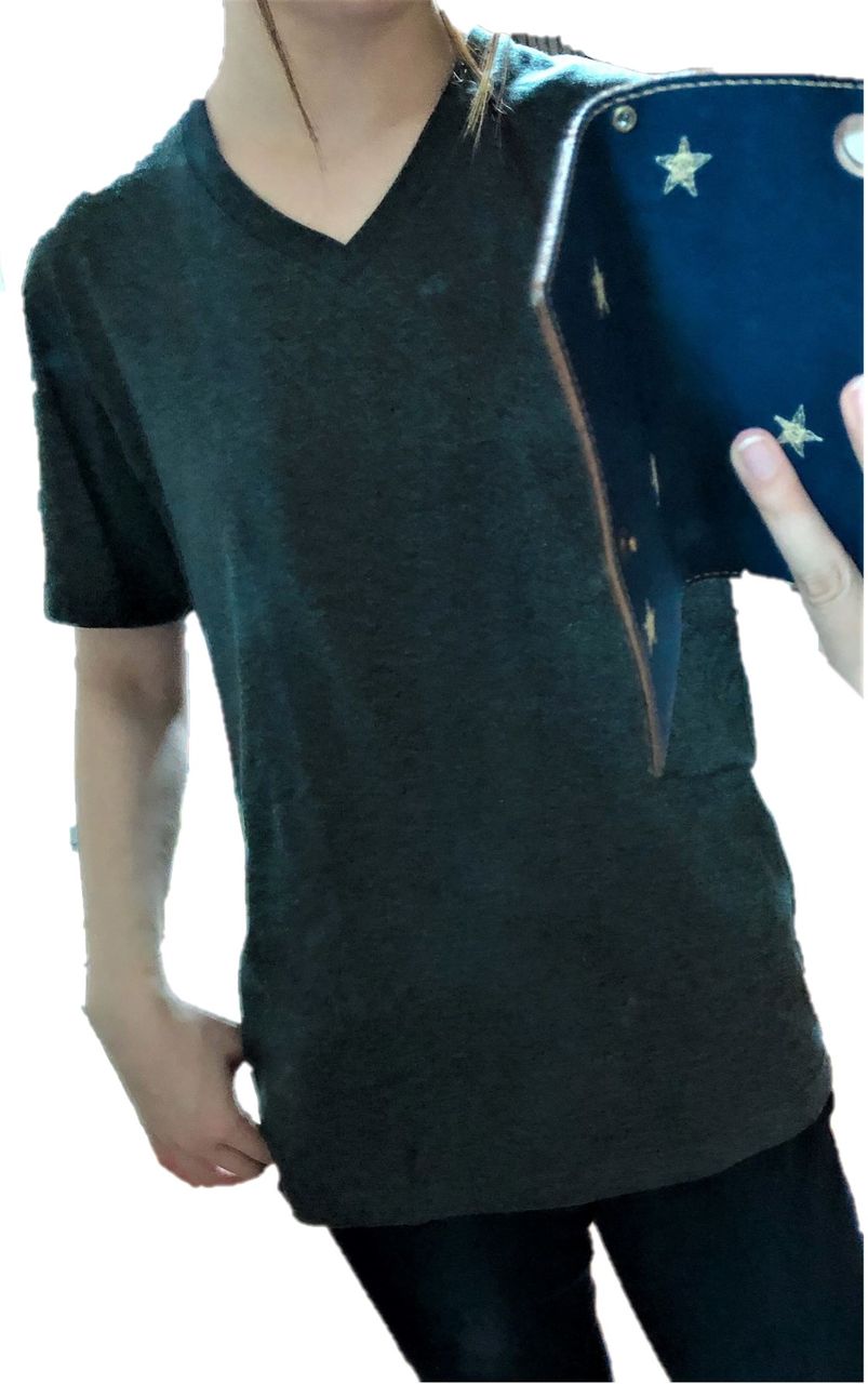 グレーのVネックはジャストで着たかったのでSサイズを購入。