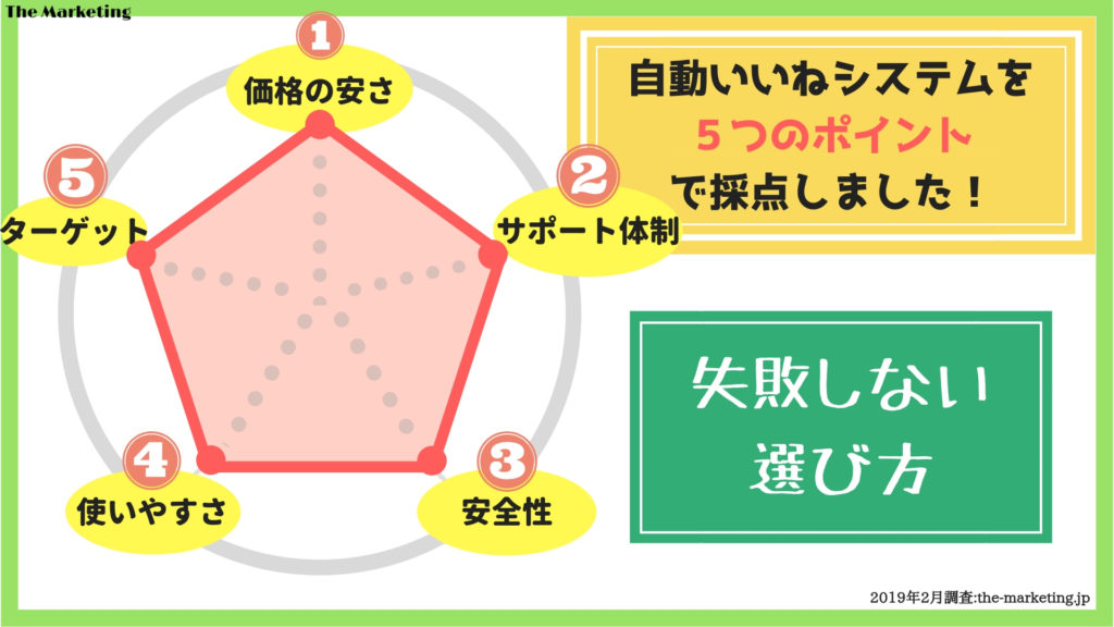 インスタグラムの自動いいねツールを選ぶには、まず押さえておきたいポイントが5つあります。