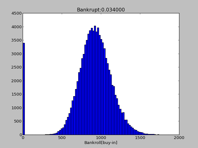 +EVギリギリの勝率36.5%でも500バイイン用意すれば、とりあえず破産確率は5%以内に抑えられるらしい