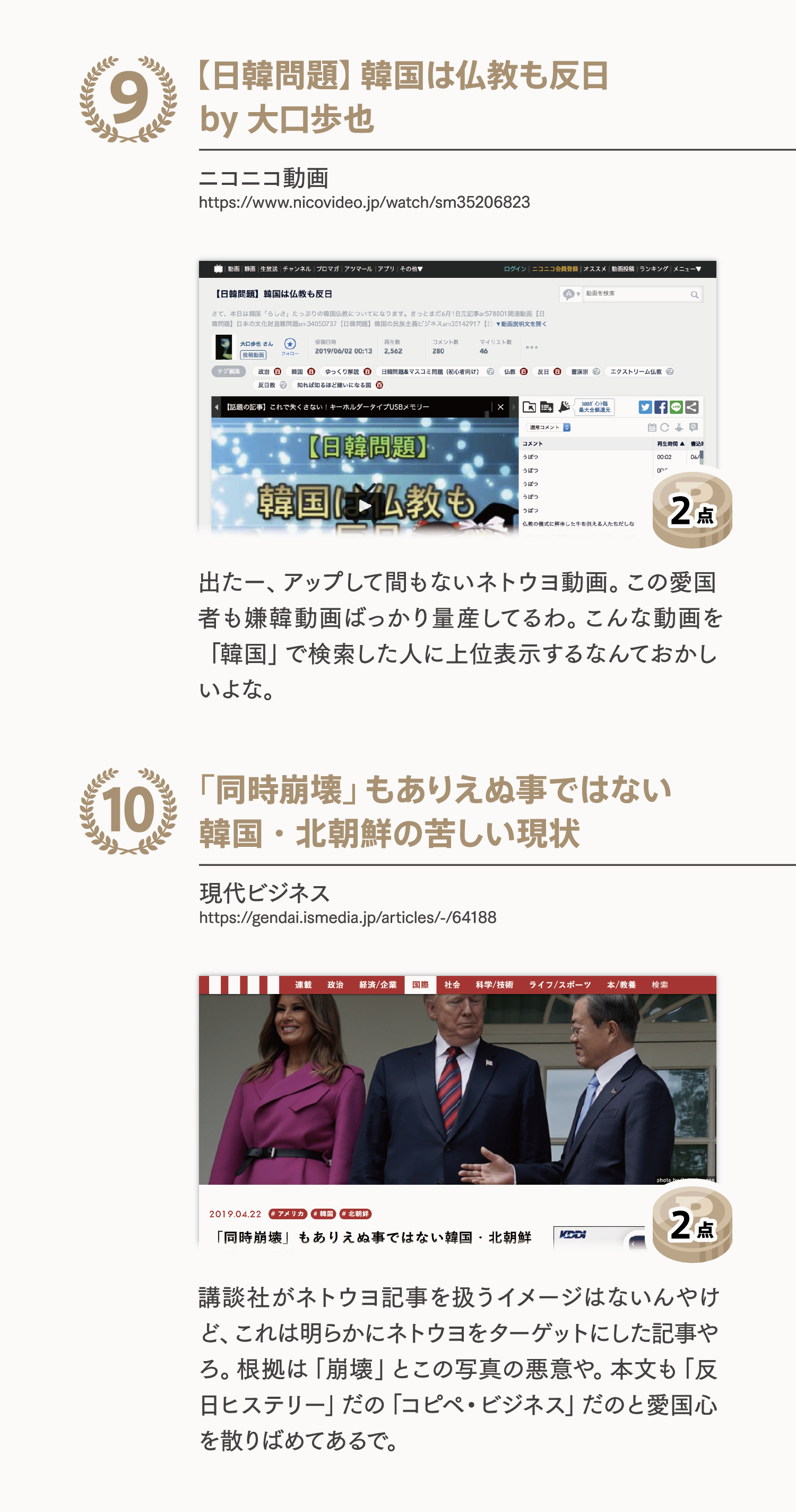 昨今の薄汚いネット事情が間違いなく反映されてると思うわ。まあ別に韓国を嫌うのは人の勝手だが、だからってデマに流されるのは只のバカだわな。
