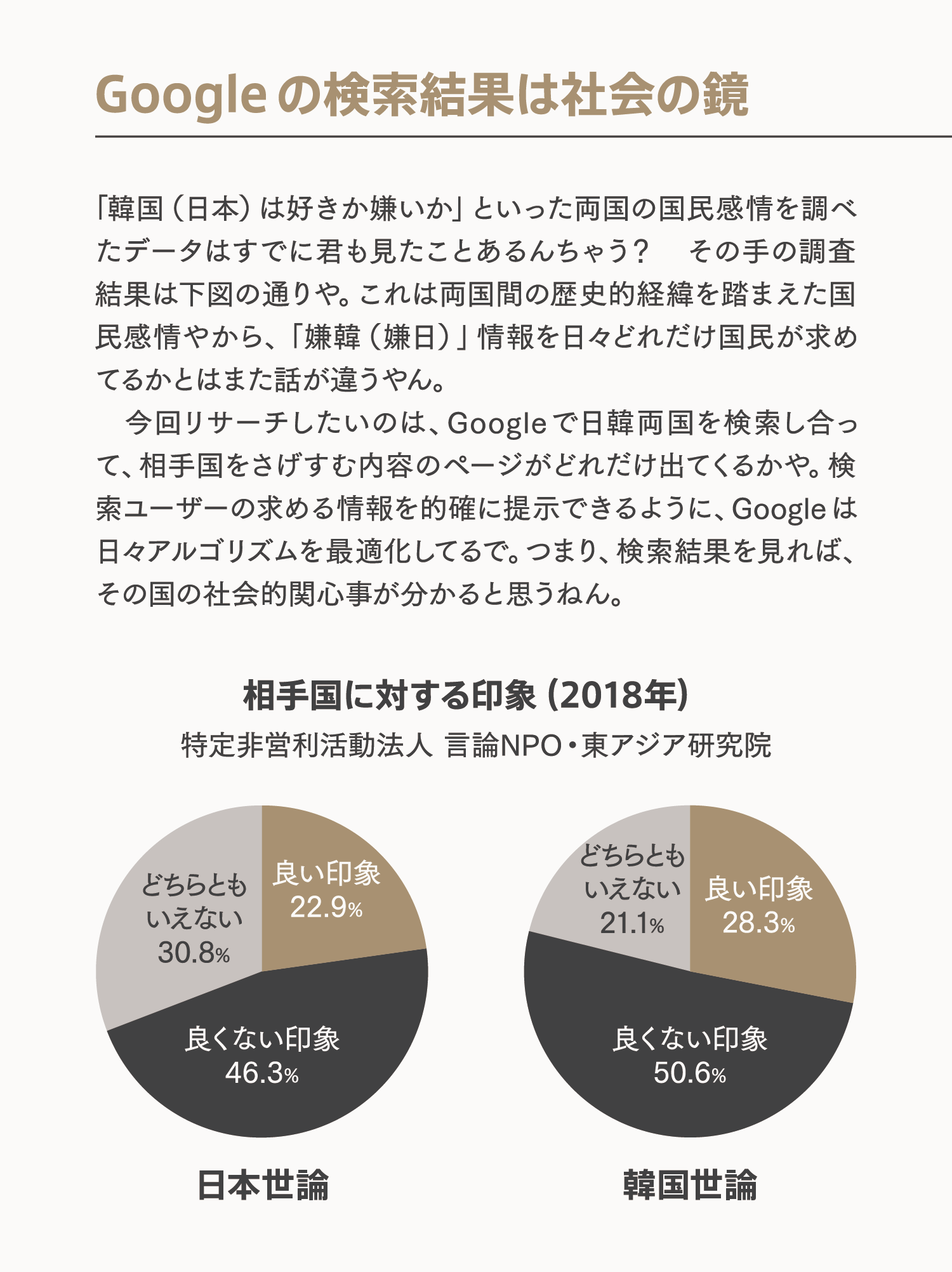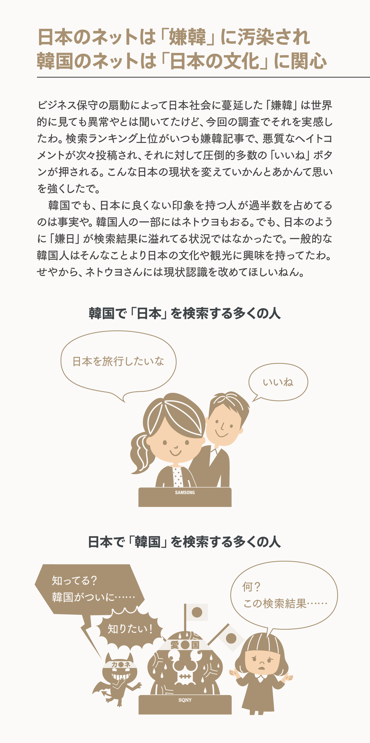 韓国のネット空間も日本のネット空間も相手国を素直に捉えた結果が正直に反映されてるだけ