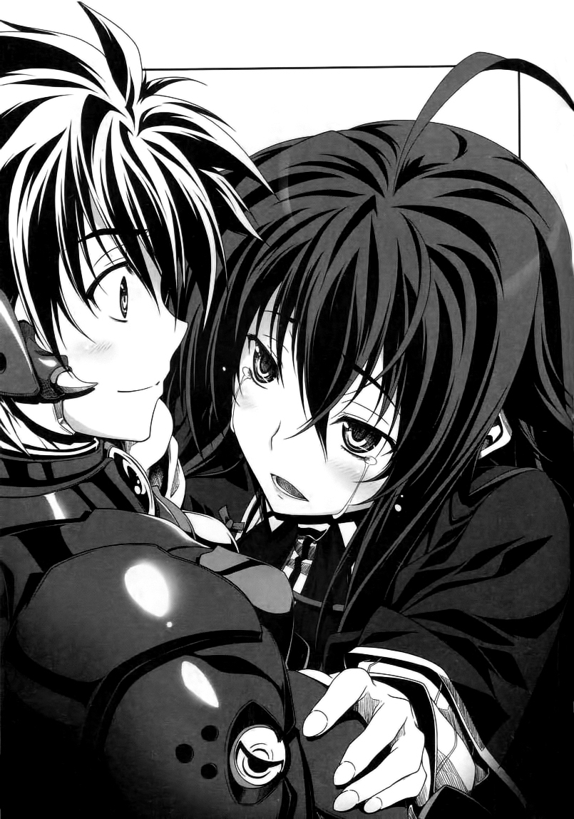 In Volume 21, Following his fight against Rizevim, Issei wakes up in the hospital one week later after his previous battle. Issei also loses his ability to speak and think about breasts without feeling pain due to the after-effects of using DxD mode, which he is warned to never use again. After recuperating enough, Issei saw his parents and met up with his friends to rejoin the battle against Qlippoth, with an army of different races preparing to face off against Apophis heading to the coastal waters of Japan with an impending army of Evil Dragons, Fake Red Dragon Emperor army and one of the Imperial Beasts bodies. After retrieving the stolen Holy Grail, Issei battles Apophis one-on-one in his True Queen armor within a black barrier and faces difficulty against his Umbrakinesis that dissolves everything it touches and avoids using his DxD mode. Issei lays on the ground injured and barely able to move with both his demonic energy and stamina exhausted, he notices the amulet his mother recently gave him fall off of his tattered uniform and inside he finds a photo of him with his parents when he was 3 years old and another of all the current residence at his home. While still in pain, this gives him the will to stand and fight as he begins to recite the forbidden chant.