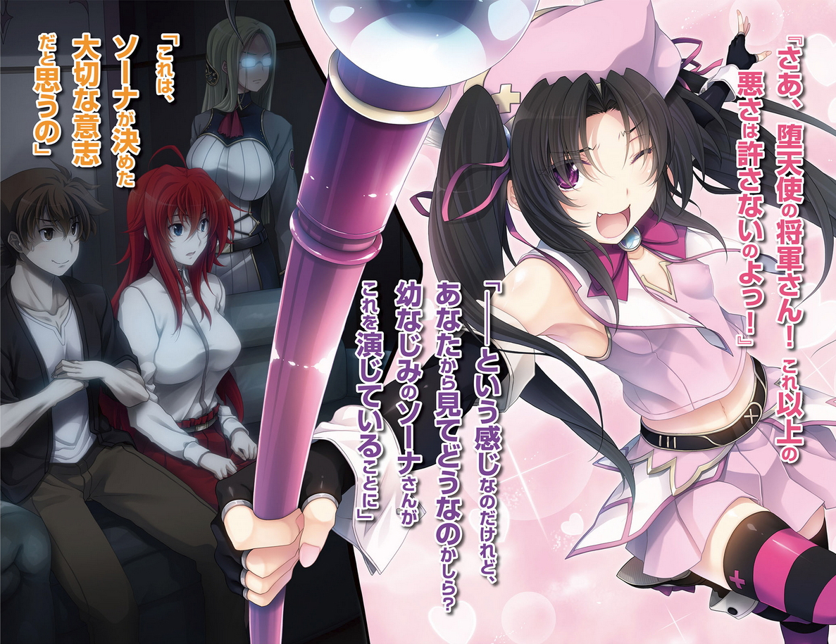 Issei goes on a date with Akeno, but with their club members noticeably watching from a distance yet the two still proceeded to enjoy their time. later Akeno took the opportunity to lose them, while successful, they ended up in a street with love hotels, Issei tried to leave but Akeno told him she didn't mind going. Their day comes to an end as both of them met Odin, Rossweisse and Baraqiel, Akeno's father and Fallen Angel leader, who was serving Odin's bodyguard at that time. At Issei's home, Odin tells them that he was to meet with the Japaneses Gods to form a alliance. Issei accidentally overhears Akeno arguing with her father, he was under the impression that he was a "Dragon who devours breasts for power" and wanted her away from him, she told him he had no right to speak to her that way as she blamed him for her mothers death. They both notice Issei nearby, Baraqiel attempts to punish him for eavesdropping but Akeno stood in his way told him to go away, she then embarrassed for a bit solace. The next day, the Gremory group participated in an event for the Oppai Dragon series in the Underworld sponsored by the house of Gremory. Members whose characters were used for the show were giving handshakes and autographs for fans, Ravel had also come to help with organizing the event.