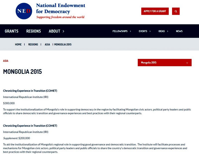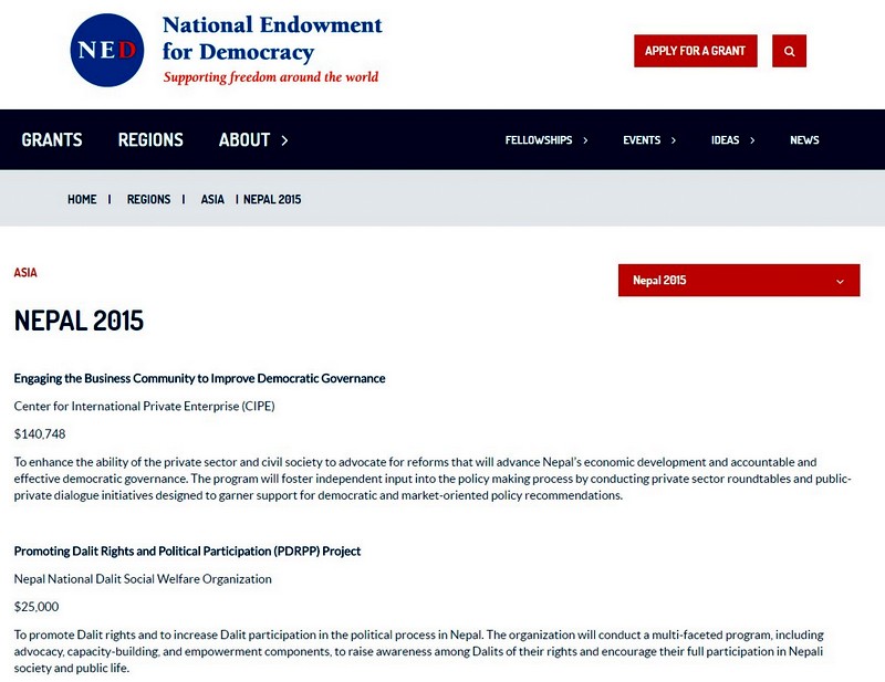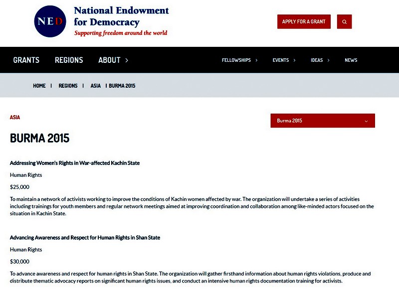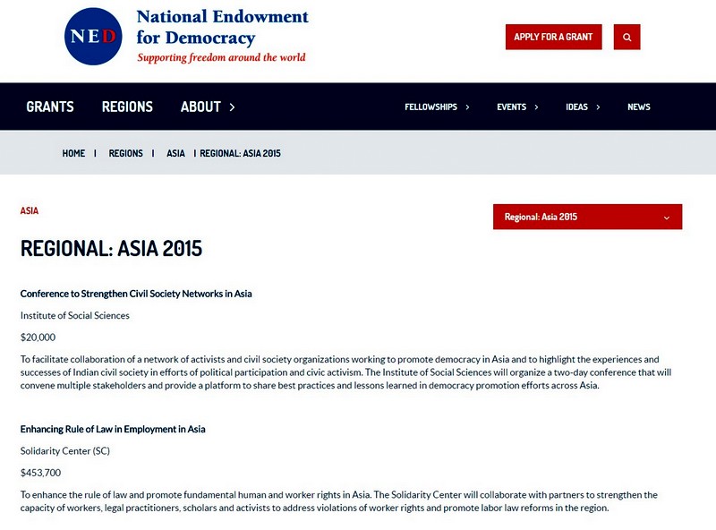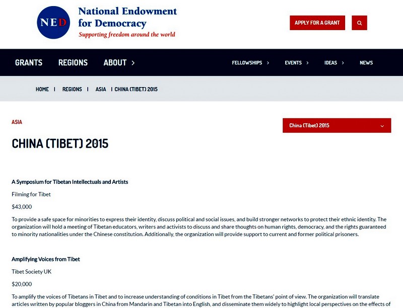 The NED also fund programs through their grants to Asia and South Asia.