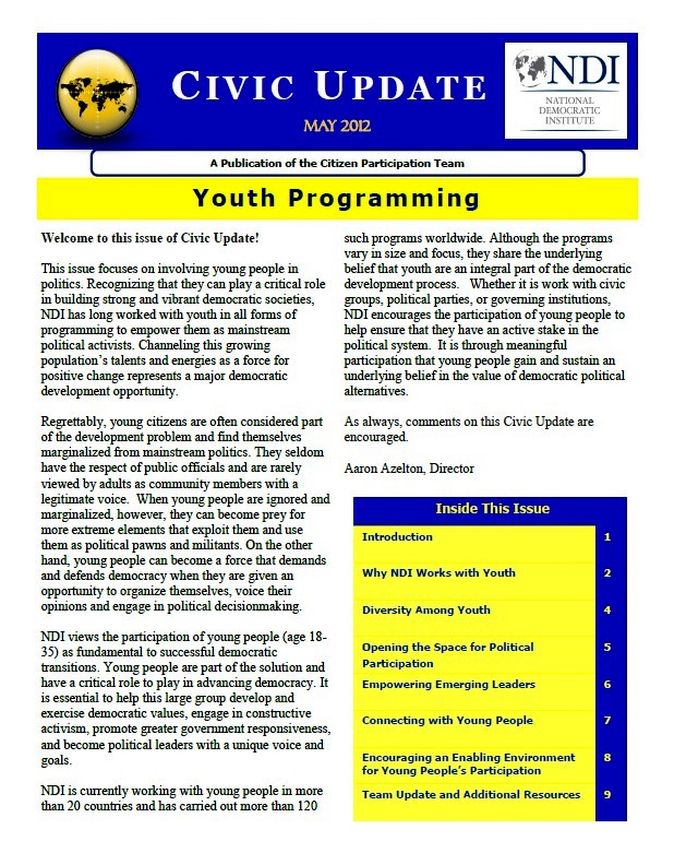 NDI Civic Update on Youth Programming. May 2012 Front Page |