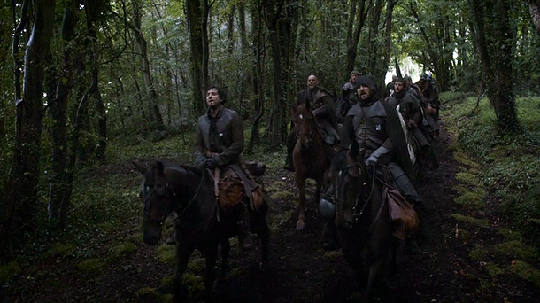 Bolton men take Jaime Lannister and Brienne of Tarth prisoner.