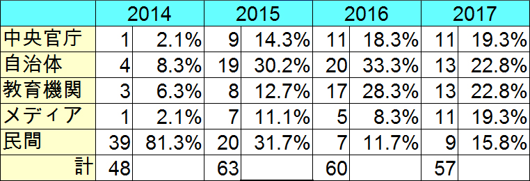 | 後援団体の内訳(本紙まとめ) |