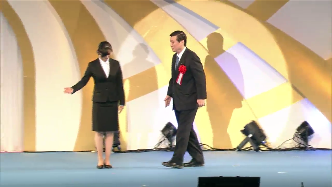 そして来賓代表として「参議院憲法審査会会長」と紹介を受け登壇し祝辞を述べたのが、予てから同教団とのずぶずぶ関係が発覚していた柳本卓司参議院議員(大阪府選挙区)だ。柳本議員は「韓鶴子総裁様」「皆様方とのご縁がいちばん深い関係であるということでご挨拶」「早稲田大原理研と一緒に運動」「同僚の同志」「韓総裁様には今年の2月にも韓国に訪問させていただきまして親しくお言葉をいただきまして、多分国会議員の中でも10数度以上総裁様とお話しをさせてご挨拶をさせていただくのはわたくし以上の方は他に見当たらないだろうと自負をしている次第でもございます」「現在、参議院憲法審査会会長という天職をいただいている」「総裁様」「徳野会長様、宋会長様をはじめ多くの皆様方が立派に志と行動を実践なされておりまして」などと発言した。柳本議員はこれまでにも、2013年9月さいたまスーパーアリーナで開催された韓鶴子講演&大規模信者集会で中川雅治現環境大臣とともに来賓挨拶したり、2015年3月には韓国の国会憲政記念館大講堂で開かれた『韓日青年大学生平和シンポジウム及び姉妹結縁式』に出席し祝辞を述べた“前科”がある。