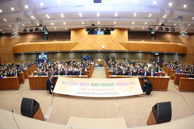 | 『韓日青年大学生平和シンポジウム及び姉妹結縁式』に出席する柳本卓治議員 柳本議員の左隣りは太田洪量・国際勝共連合会長 (教団サイトより) |