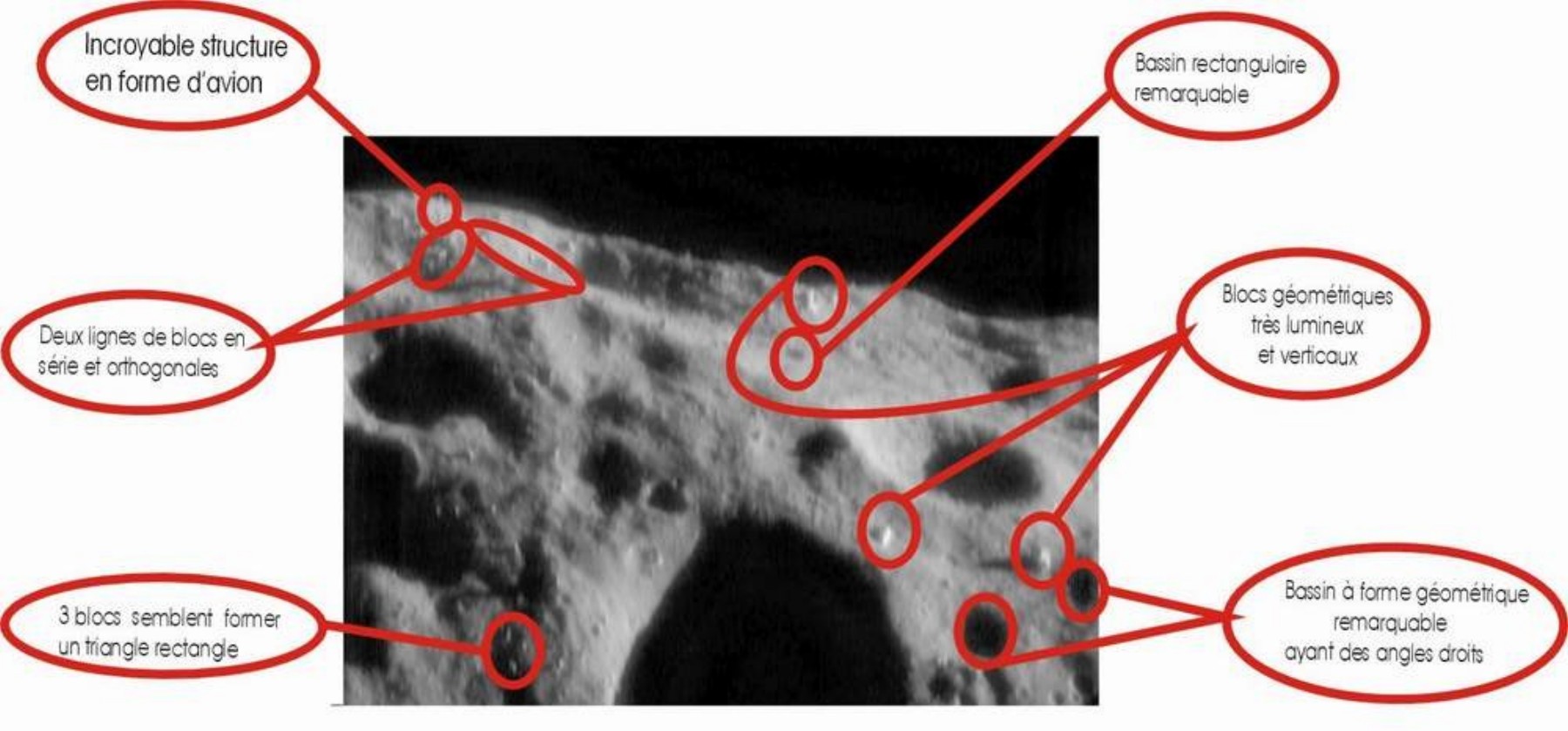 Il y a bien plus à voir dans cette image (comme certains bassins rectangulaires ou presque carrés, rainures parallèles etc...), que nous vous laissons le soin de découvrir par vous même . Des agrandissements fidèles et un traitement informatique, faits par des spécialistes pourraient s'avérer, ici , très utiles pour révéler, enfin, ce que l'on nous cache depuis des lustres. Avis aux amateurs.