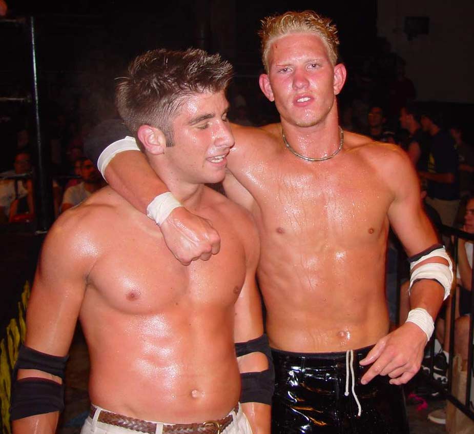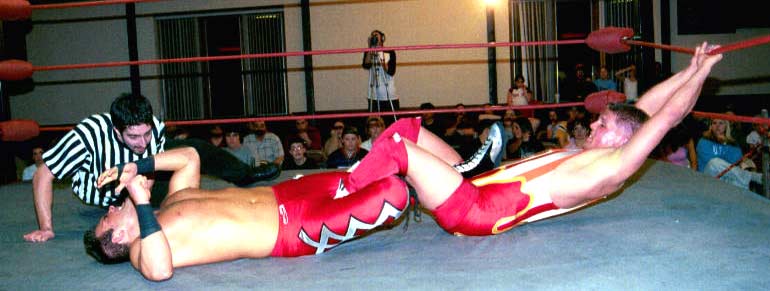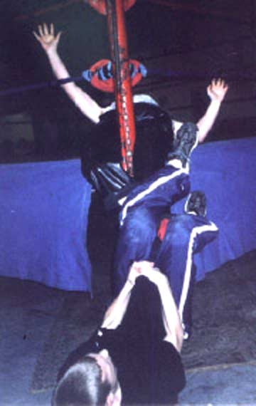 | These vicious blond boys are determined to snap the other man's leg!! Check out the sadistic little grin on Corino's face as he watches his victim struggle and groan in anguish. I think this cheating is turning him on! |
