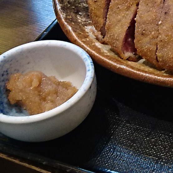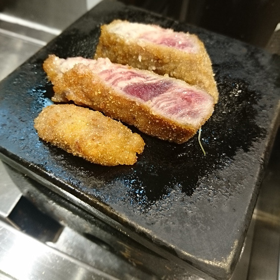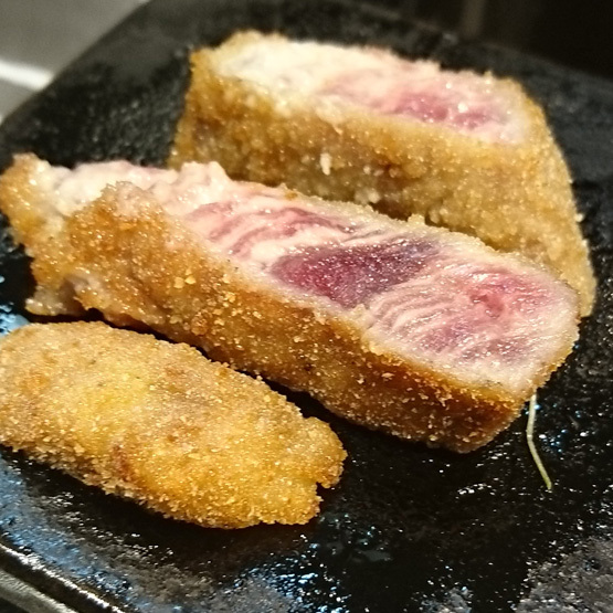 思いっきりレアに揚げた牛かつを、