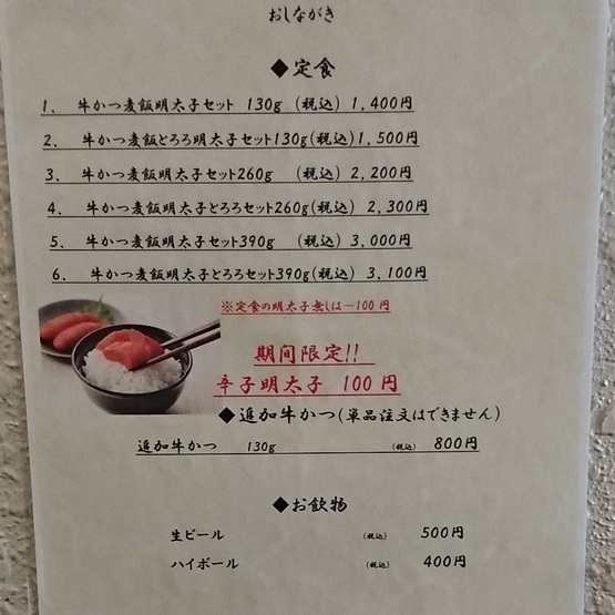牛かつ もと村 メニュー