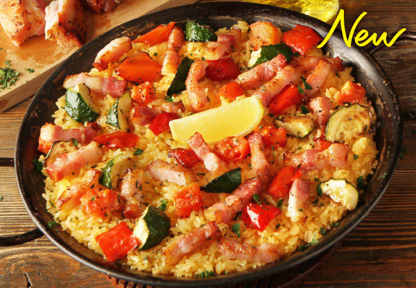 ビバパエリアTOP > メニュー > パエリア > イベリコ豚のパエリア