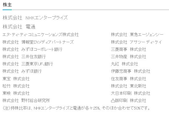 >(注)持株比率は、NHKエンタープライズと電通が各々25%、そのほか合わせて50%です。