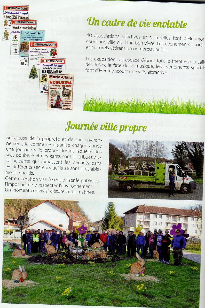 Au sujet des déchets, l'employé a herimoncourt chargé de ramasser les poubelles ne le fait quasiment jamais (un parfait exemple de ces fonctionnaires payés à rien foutre qui passent pour des victimes qu'on leur demande de faire même que le minimum syndical de leur travail), on voit au parc des poubelles qui débordent quasiment tout le temps, avant les vacances elles débordaient tellement que ce sont les enfants allant à la garderie qui ont été forcé de ramasser les déchets des poubelles qui tombaient à coté pour les remettre dans les poubelles (je l'ai vu de mes yeux, j'étais là), ils les ont même forcé à mettre des affichettes sur les barrieres disant de "respecter la nature"... alors qu'en fait les poubelles n'était pas ramassées par la mairie, elles débordents ou finissent par se casser et le contenu se répand partout, il y a eu aussi a coté du gymnase pendant des mois des bouts de verre de vitre cassée, finalement ramassé mais on m'a dit que c'était pas par la commune, et il y a toujours (au moins la semaine derniere) la vitre à moité cassée qui menace de tomber sur ceux étant par là y compris les enfants du college allant là en sport.