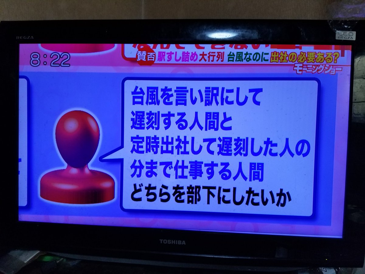 ワイ「台風でも休ませない会社とちゃんと休ませる会社。どちらに勤めたいか。考えろ」