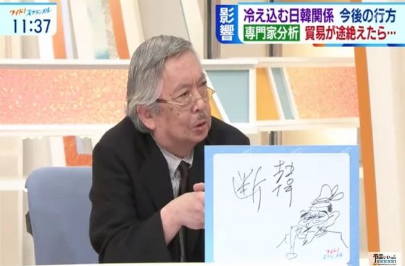 また、テレビ朝日系「ワイド!スクランブル」では、コメンテーターの黒鉄ヒロシ氏が、フリップに「断韓」と書いて国交断絶を呼びかけた。