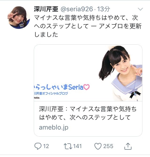 深川さんなのは知ってたけど下の名前がセリアなの初めて知ったわ