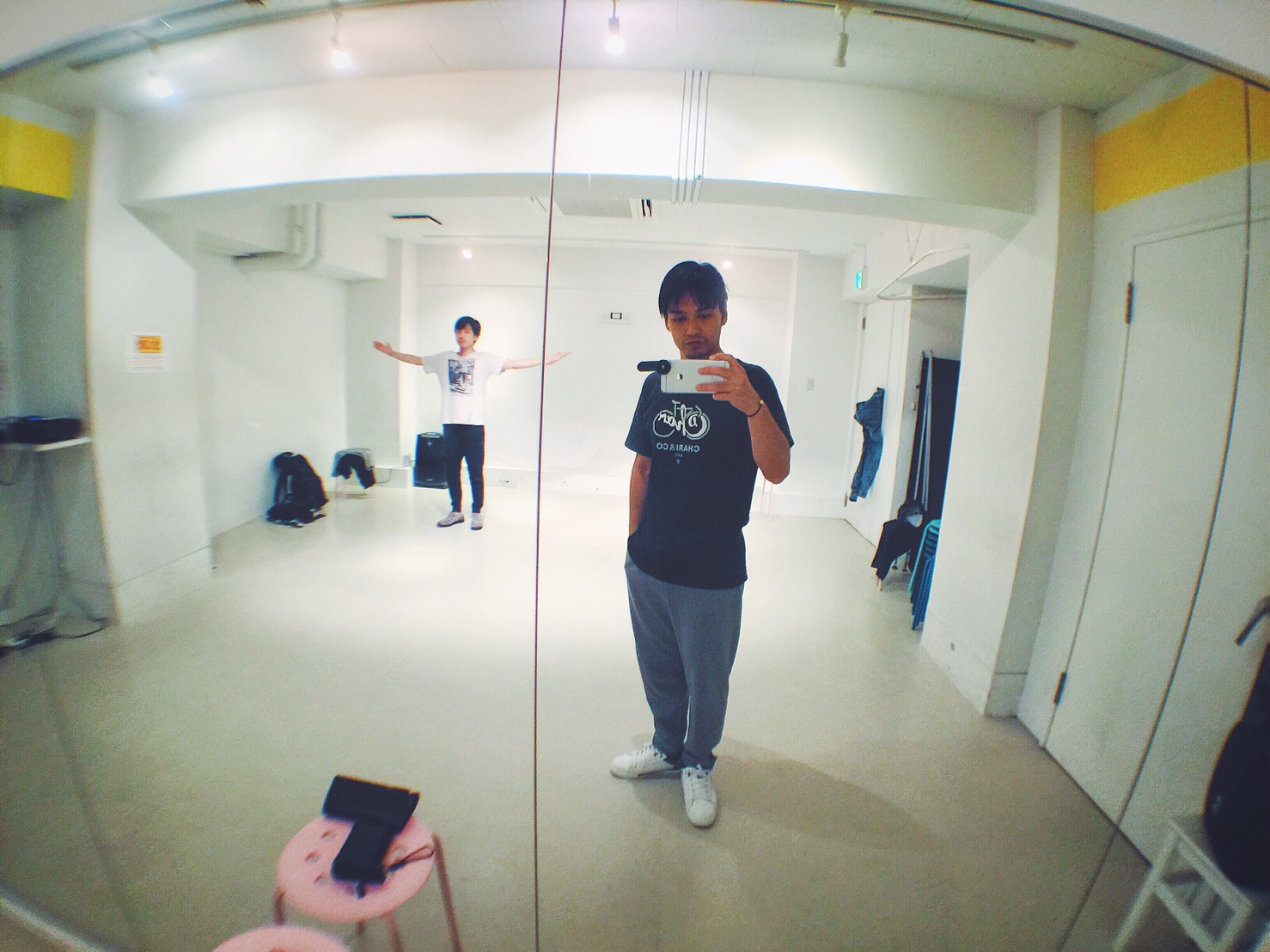 今日のリハーサルは1番乗りでした。先日から新曲へ向けてのリハーサルが始まっています。その動きを確認する為に必要な魚眼レンズをリハーサル前に購入し、誰もいないスタジオで試し撮り。