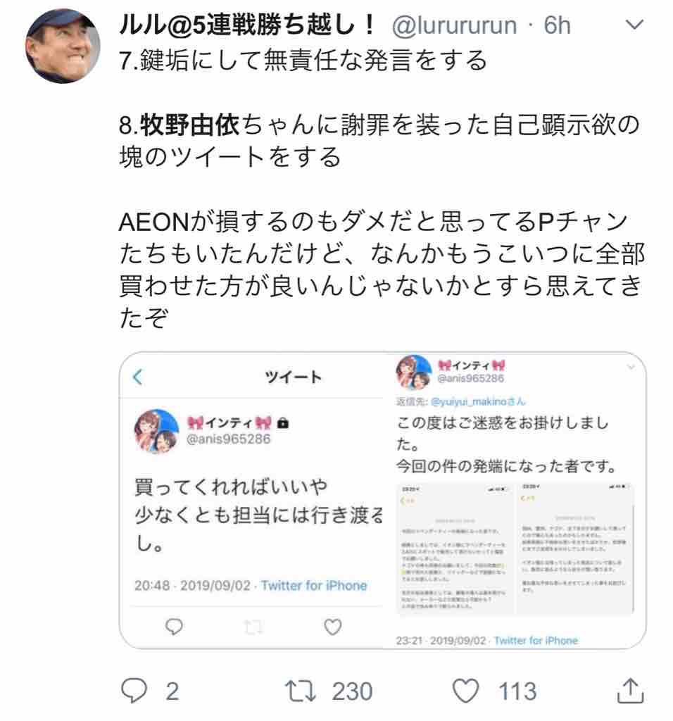 - 【朗報】解釈違いで絵描きを垢削除に追い込んだまゆプロ代表でイオンにお茶20ケース発注イキリ芸をかまし声優に謝罪させたmomotaPさん金額補填のDMを晒される