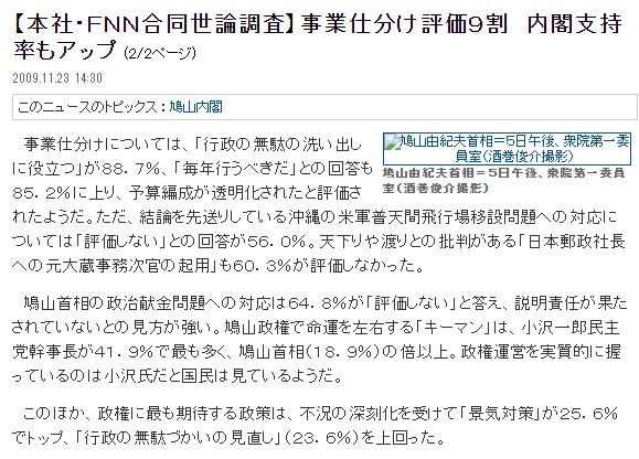 (産経新聞2009年11月23日、1ページ目、2ページ目)