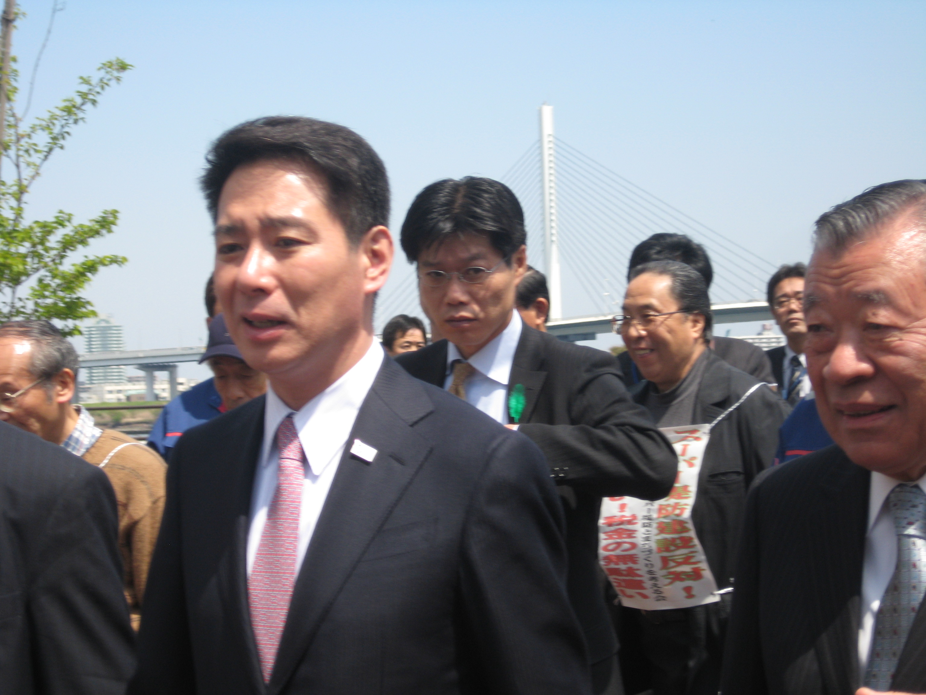 昨日、前原誠司国土交通大臣が江戸川区の平井地区のスーパー堤防の視察においでになった(写真、右側は多田正見江戸川区長)上で