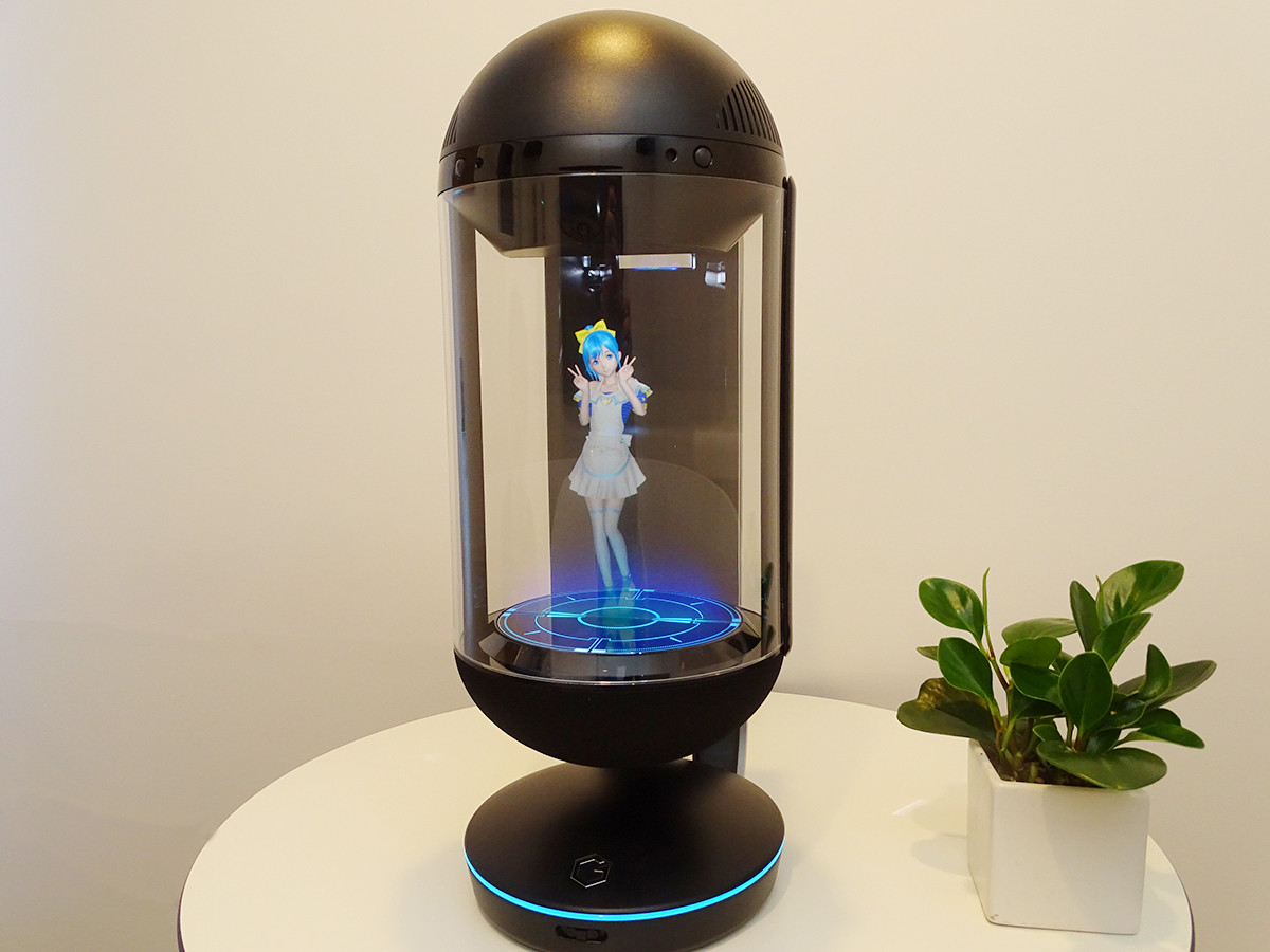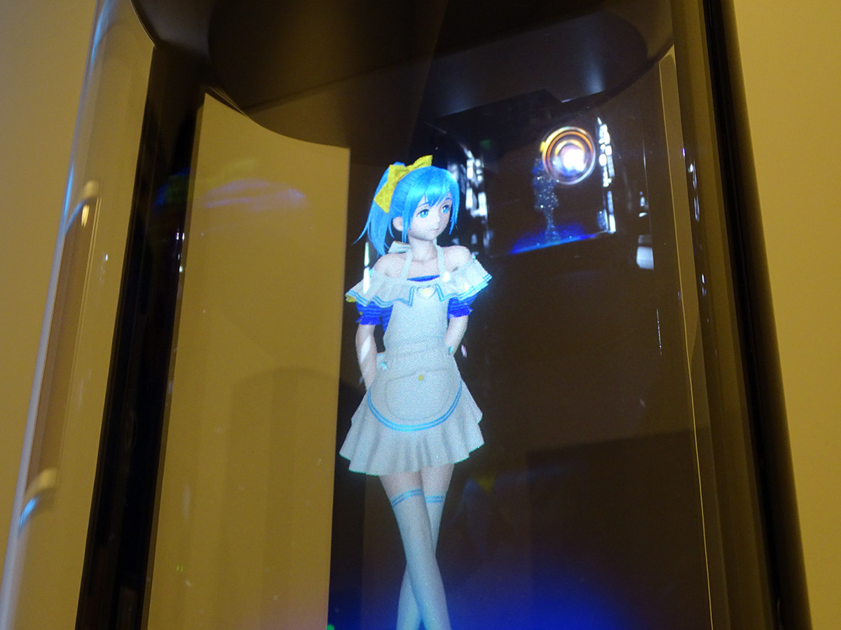 初めてGateboxを見た時には大きな本体に驚いたものですが、そこに逢妻ヒカリが浮かび上がると、とてもちょうど良いサイズ感であることに納得しました。Gateboxの代表取締役である武地 実氏によると「一般的なフィギュアのサイズ感である15cm前後に逢妻ヒカリが表示されるように設計した」とのこと。また本体をテーブルの上に置いたときに、ちょうど目線の位置にキャラクターが表示されるようにスタンドとのバランスも気を配ったそうです。