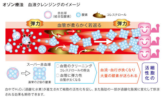 これは採血した血にオゾン与えて、感染症のリスクを与えた上で活性酸素とかいう有害物質を加えて体に戻すわけ