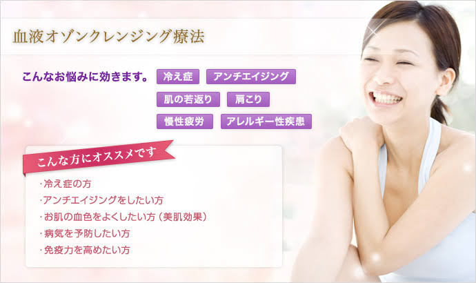 このクリニックのホームページによると、血液クレンジングは100mlの血液を採取し、医療用オゾンを血液に加えた後で体内に戻す治療法。
