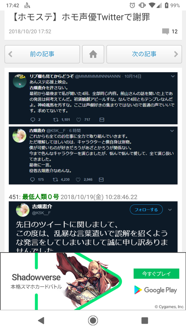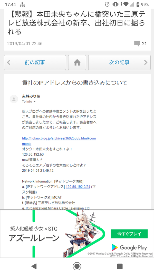 本田未央ちゃん応援まとめ速報のデマ・水増し記事(の一部)のスクリーンショット 2019年09月26日 カテゴリなしの他の記事 本田未央ちゃん応援まとめ速報のカタログ🐷🐷🐷🐷🐷 近況報告(通報2回&削除のお知らせ) 本田未央だけでなく全アイドルやPなどに喧嘩を売る本田未央ちゃん応援まとめ速報の被害者まとめ(57の人物と会社) 本田未央ちゃん応援まとめ速報管理人による未央Pへの捏造工作事件 本田未央ちゃん応援まとめ速報で通報したほうがいい記事を魚拓でとろう 本田未央ちゃん応援まとめ速報で通報したほうがいい記事まとめ 近況報告(通報2回&削除のお知らせ) 本田未央ちゃん応援まとめ速報で通報したほうがいい記事まとめ(URLのみ) 本田未央ちゃん応援まとめ速報のカタログ🐷🐷🐷🐷🐷 本田未央だけでなく全アイドルやPなどに喧嘩を売る本田未央ちゃん応援まとめ速報の被害者まとめ(57の人物と会社) 本田未央ちゃん応援まとめ速報管理人による未央Pへの捏造工作事件 コメントする コメントフォーム 名前 コメント 記事の評価 リセット リセット 顔 星 情報を記憶 コメントを投稿する