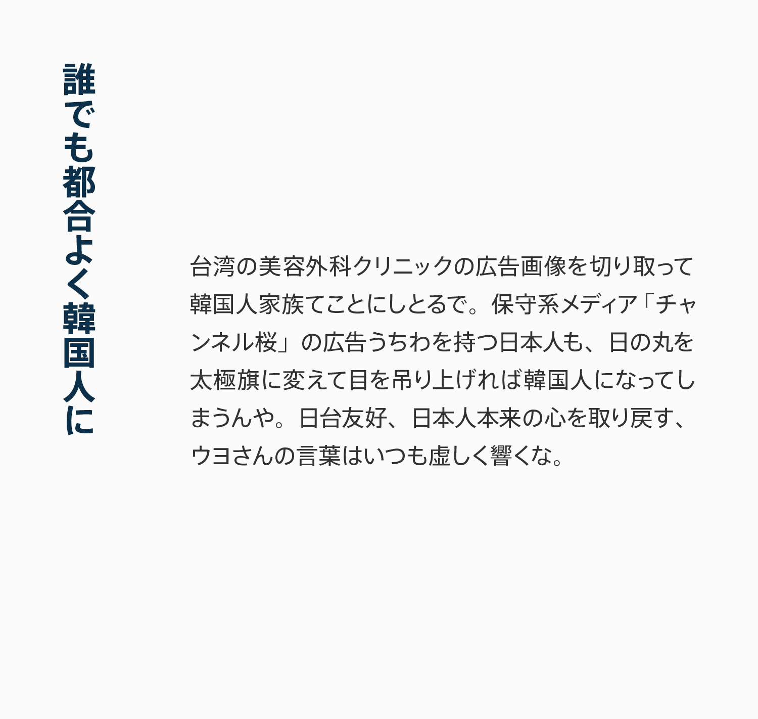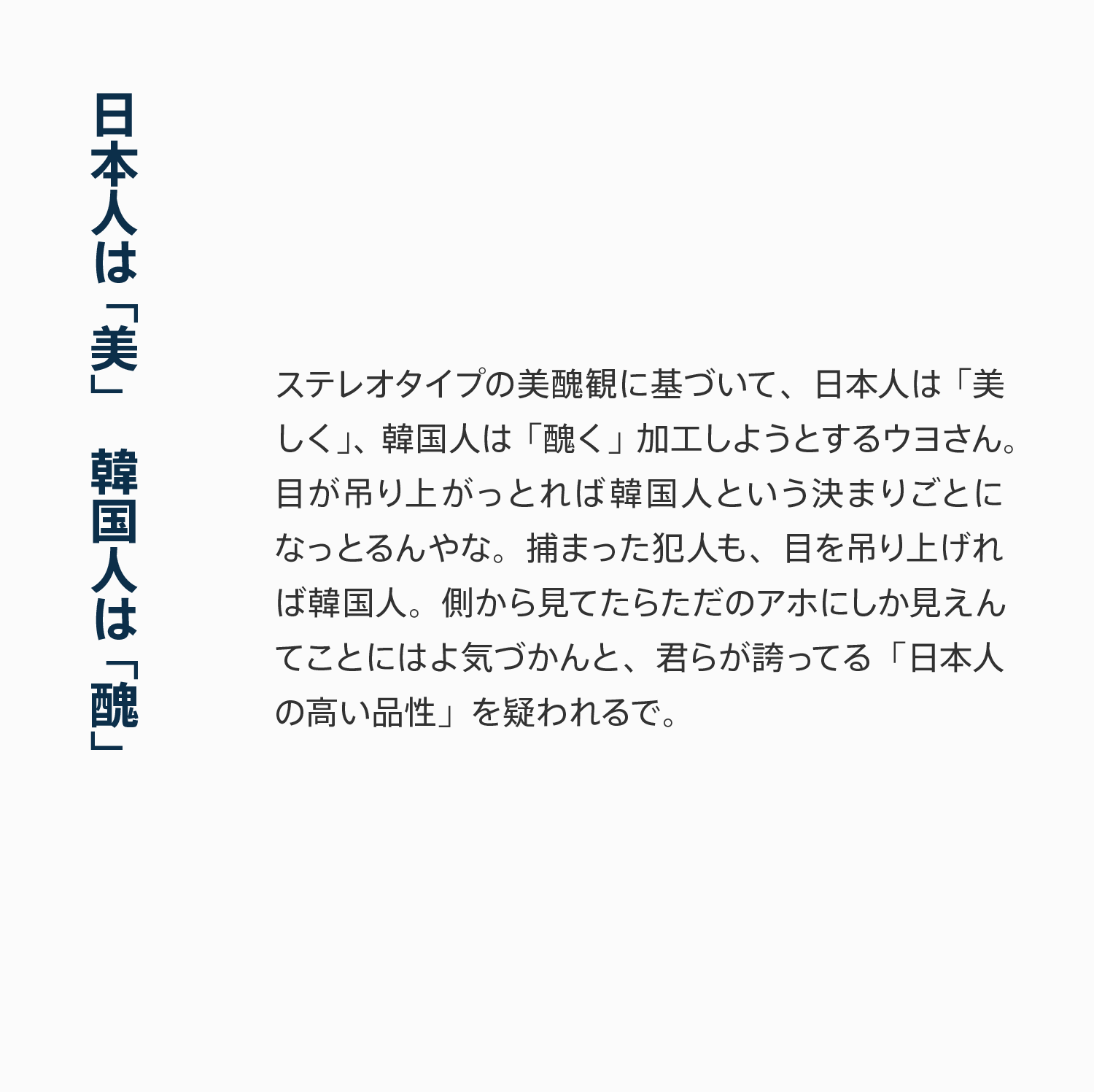 ネトウヨは白人がアジア人を差別するポーズの真似事みたいなことして、白人にでもなったつもりなんかな