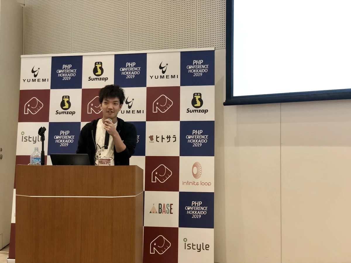 △PHPカンファレンス北海道 2019でLTをしている様子