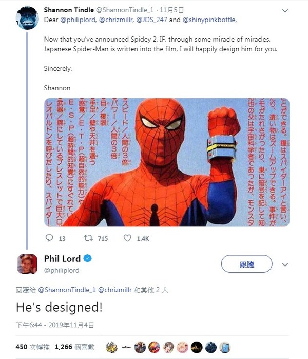 - 《蜘蛛俠:跳入蜘蛛宇宙》製作人 Phil Lord 在 Twitter 確認加入消息